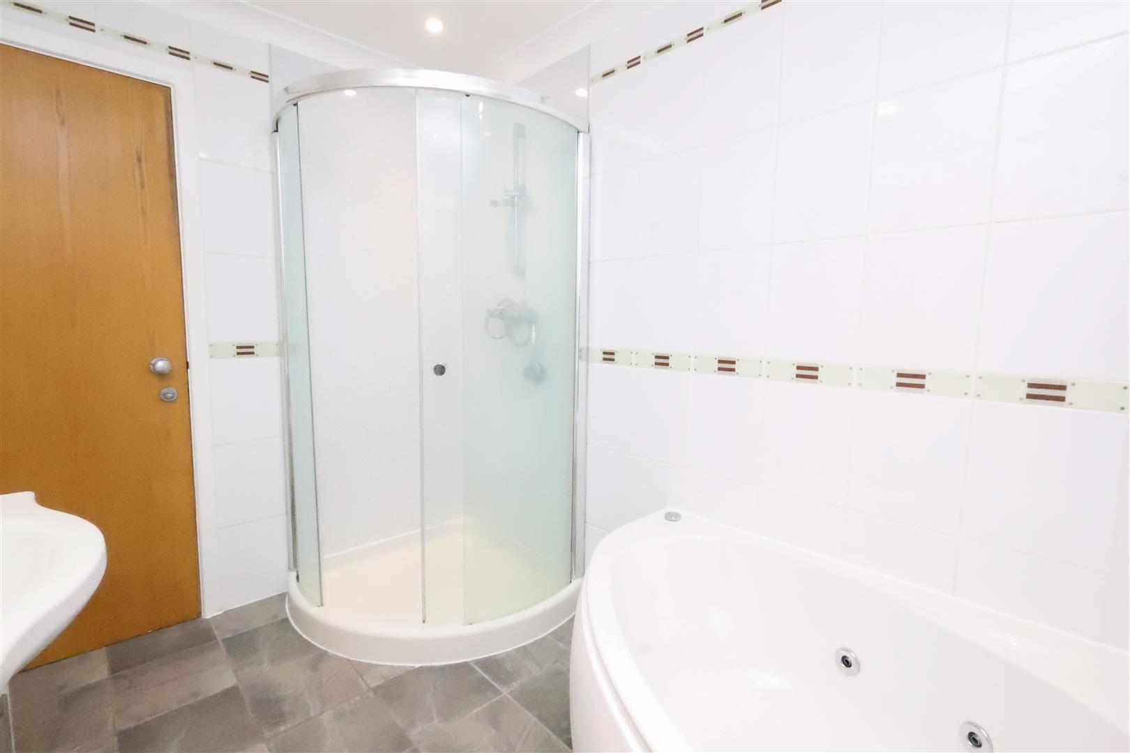 To the first floor is a generous master bedroom with an en-suite bathroom, including a Jacuzzi bath and separate shower cubicle. The second floor offers a further double bedroom, a single bedroom, and a house bathroom with a corner bath and separate shower cubicle.