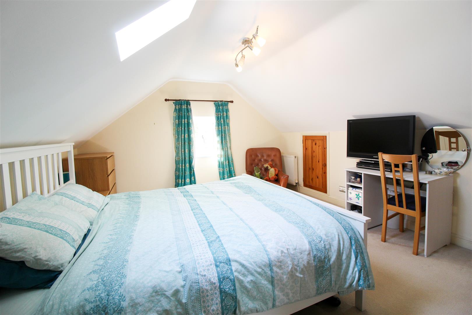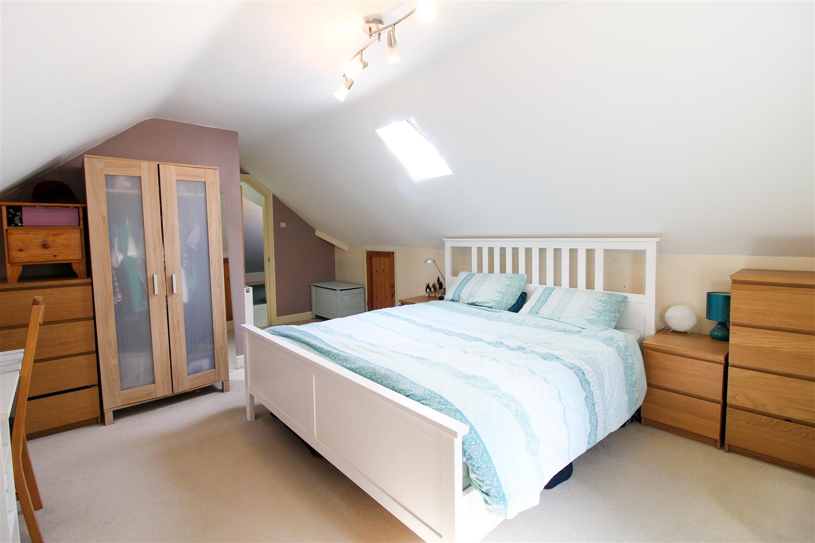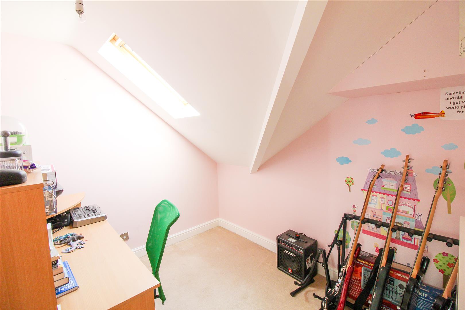 To the upper floor there is there is landing with storage cupboard housing the gas central heating boiler and also providing space and plumbing for a washing machine, good size master bedroom again enjoying a lovely outlook, second bedroom and further store room with pitched ceiling and skylight.