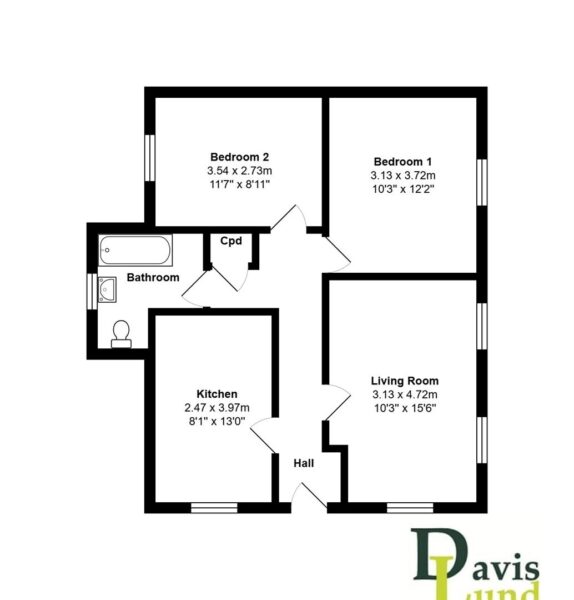 The accommodation includes a generously sized living room that benefits from plenty of natural light, a separate fitted kitchen with ample storage and workspace, and two comfortable double bedrooms. A modern bathroom with both bath and shower facilities adds to the appeal, while a useful storage cupboard off the hallway provides additional practicality.