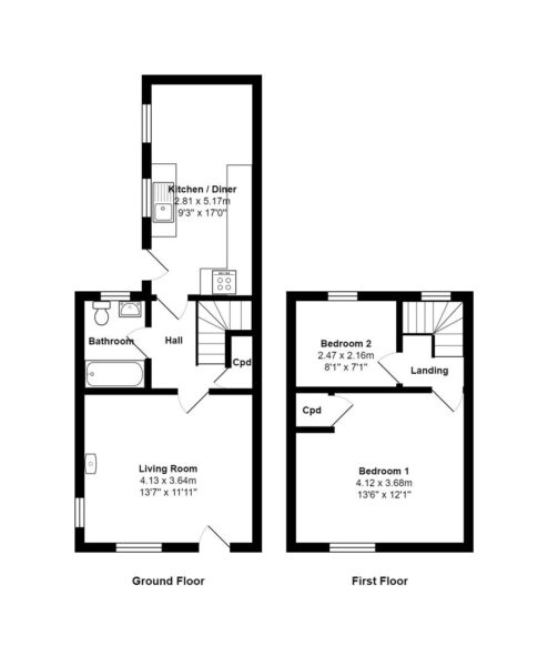 Stairs lead to the first-floor landing, which provides access to one double bedroom and one single bedroom.