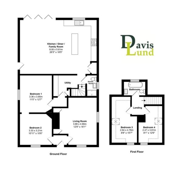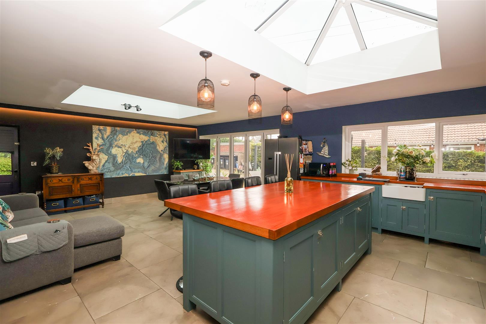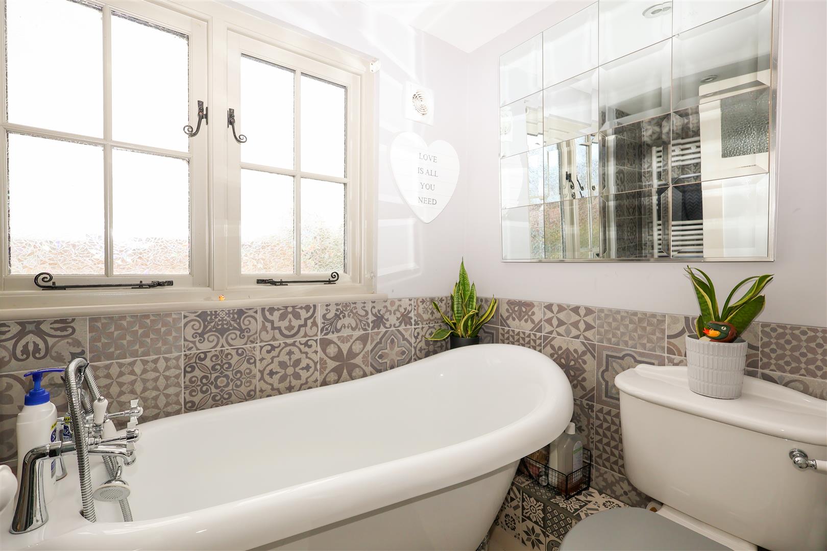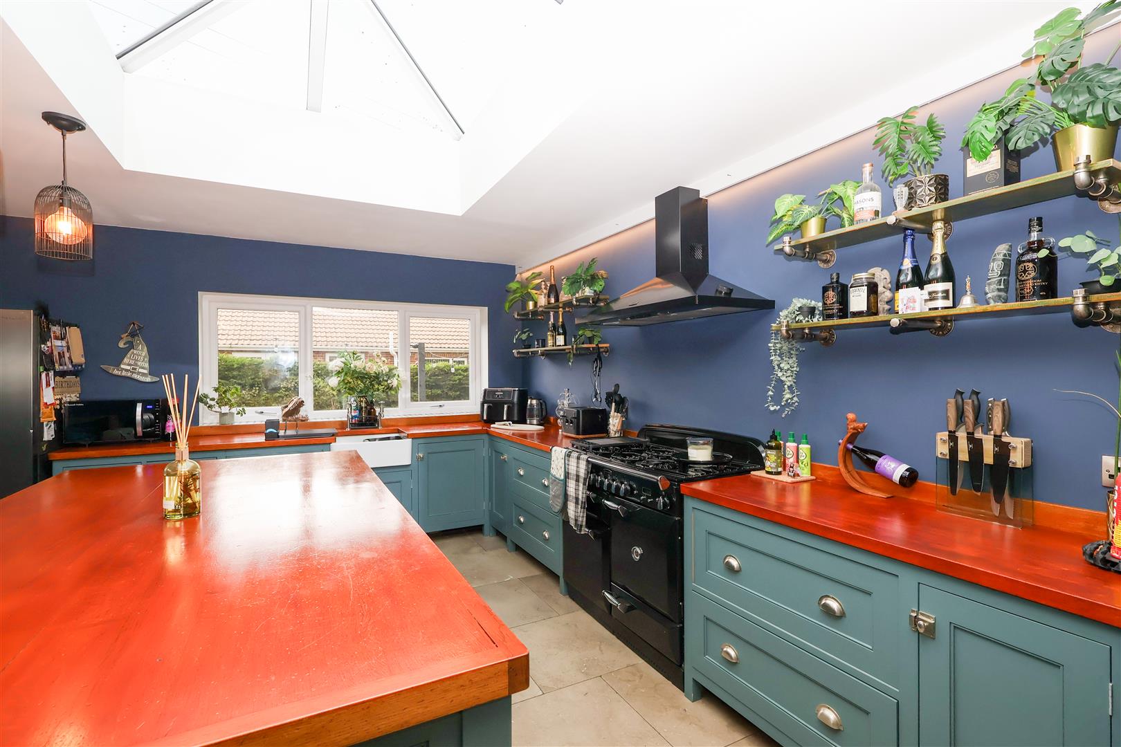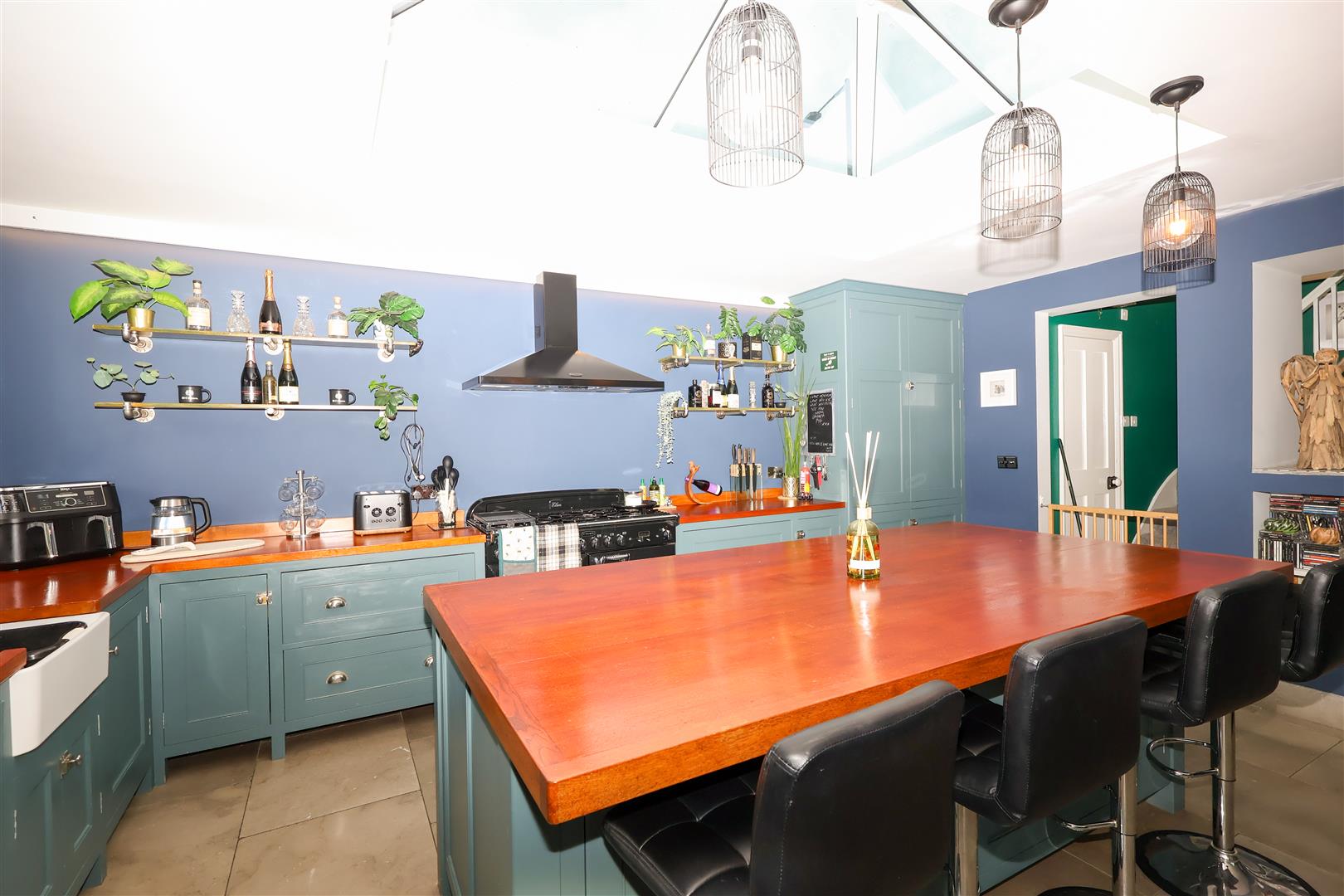 On entering the property, there is an entrance hall, leading to the spacious double aspect living room. Currently utilised as a home gym, the living room is a versatile space with fitted alcove storage. From the living room, there is a spacious utility/cloakroom, with stairs rising to the first floor and a downstairs shower room. The kitchen/diner/family room is a generous size with bi-fold doors opening onto the garden, underfloor heating and a large decked area, great for entertaining. The kitchen is fitted with a range of stylish units, some integrated appliances, modern overhead lighting and a breakfast bar/island creating a great space for indoor dining. A true hub of the home, the family room has ample space for a large dining table and lounge area, with large skylights filling the room with natural light. There are two well-proportioned double bedrooms, one currently utilised as a walk-in wardrobe/dressing room. Upstairs, there is a landing, two further double bedrooms with skylights and the house bathroom. The bathroom is part tiled and fitted with a white suite, including a bath with handheld shower and heated towel rail. The property also benefits from double glazing throughout and gas central heating.