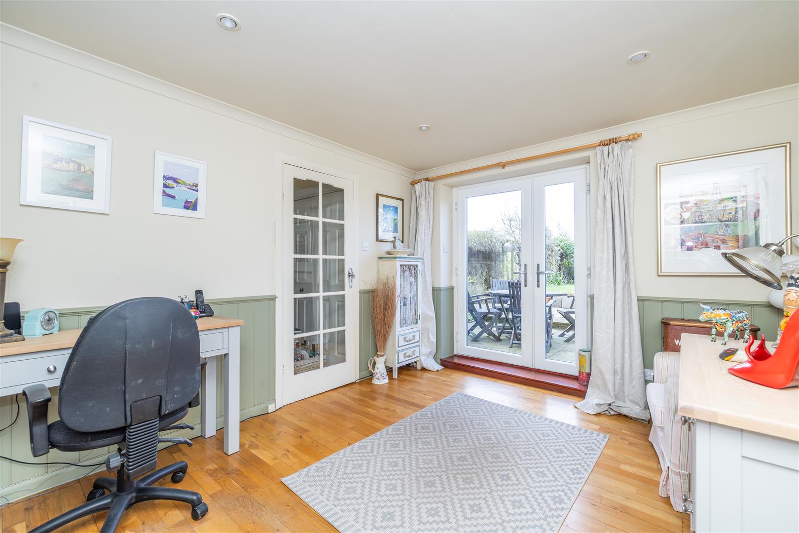 Externally, lane access leads to the large garage with additional mezzanine floor storage, plus a driveway proving parking for several vehicles. The gardens are extensive, being fully established and enjoying a lot of sunshine throughout the day. Part laid to lawn, there is an extensive patio entertainment area, as well as a summer house with power and light. The side garden backs onto fields, making for a lovely outlook.