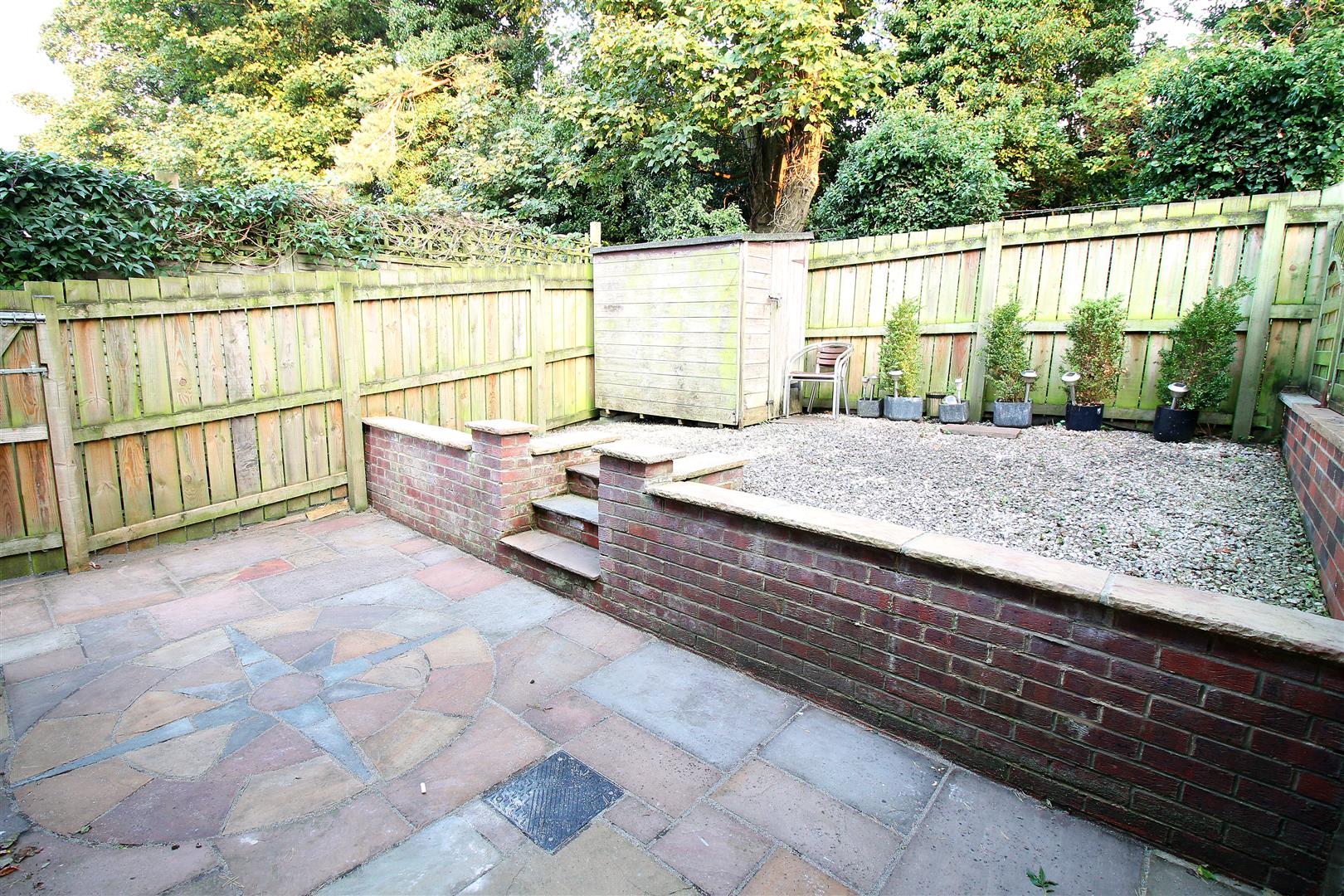 The rear garden is fully enclosed with fenced boundaries, the garden is paved and gravelled for ease of maintenance, whilst also offering a high level of privacy. The garden runs down the side of the property, which creates a handy storage area.