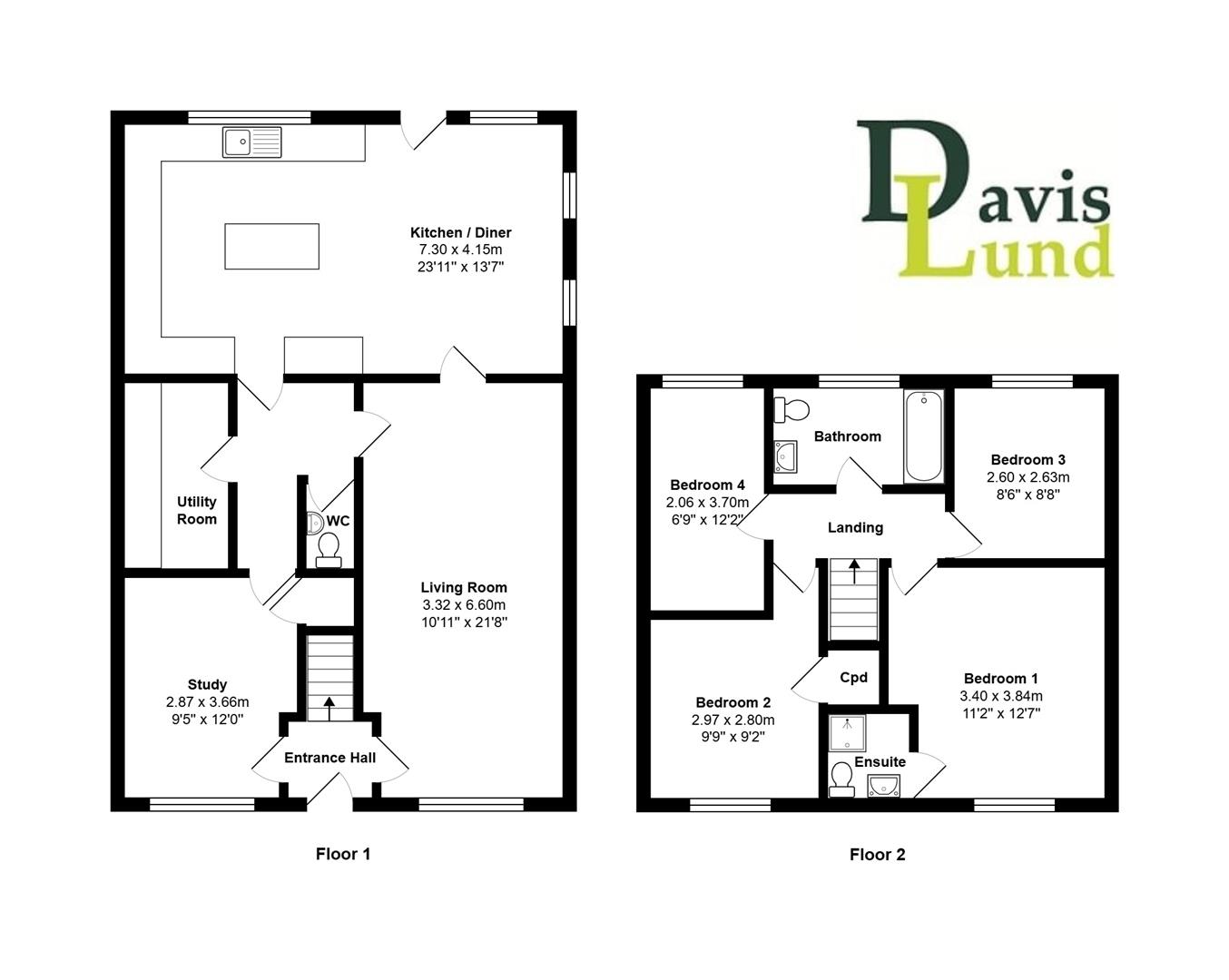 Upon entering, you are met with a welcoming entrance hall with stairs rising to the first floor. There is a generous size main living room with a log burner, a versatile study with sufficient space for home working or adapting into a play room, separate utility room, downstairs WC with cloakroom and a stylish open plan kitchen/diner/family room, featuring quartz counter tops, modern cabinetry, larder cupboard and ample space for family dining & entertaining.