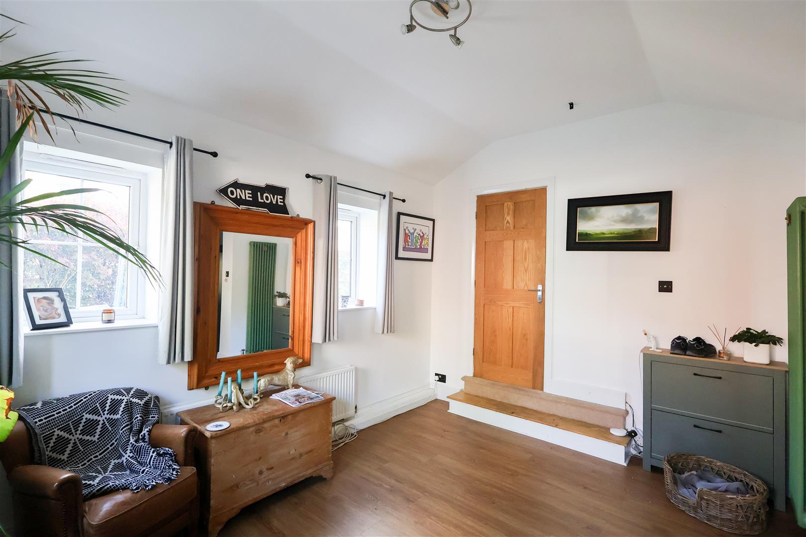 Upstairs, the main bedroom includes built in wardrobes and an ensuite shower room, part-tiled for a contemporary finish. There is a further generously sized double bedroom, 2 well-proportioned single bedrooms & a family bathroom, fitted with a white suite including bath with an overhead shower. The property is double glazed, whilst it also benefits from gas central heating.