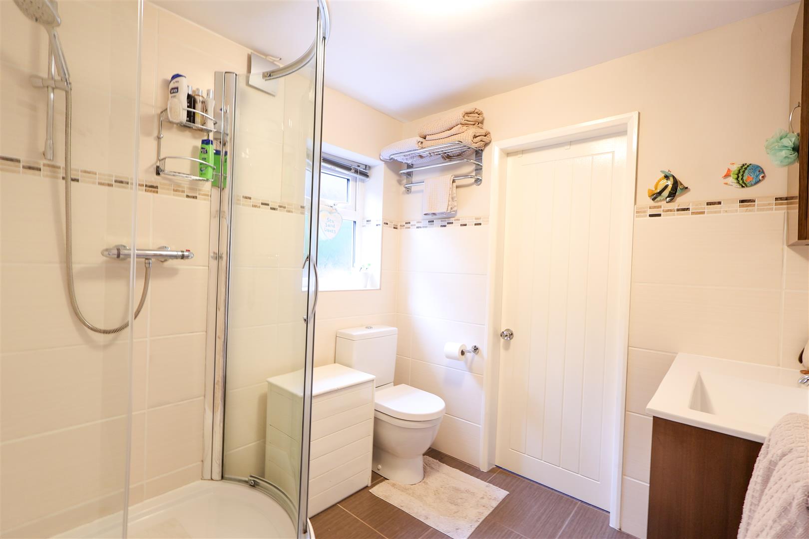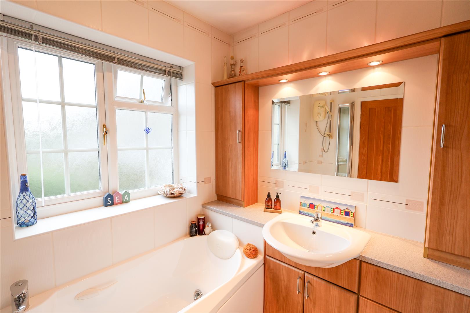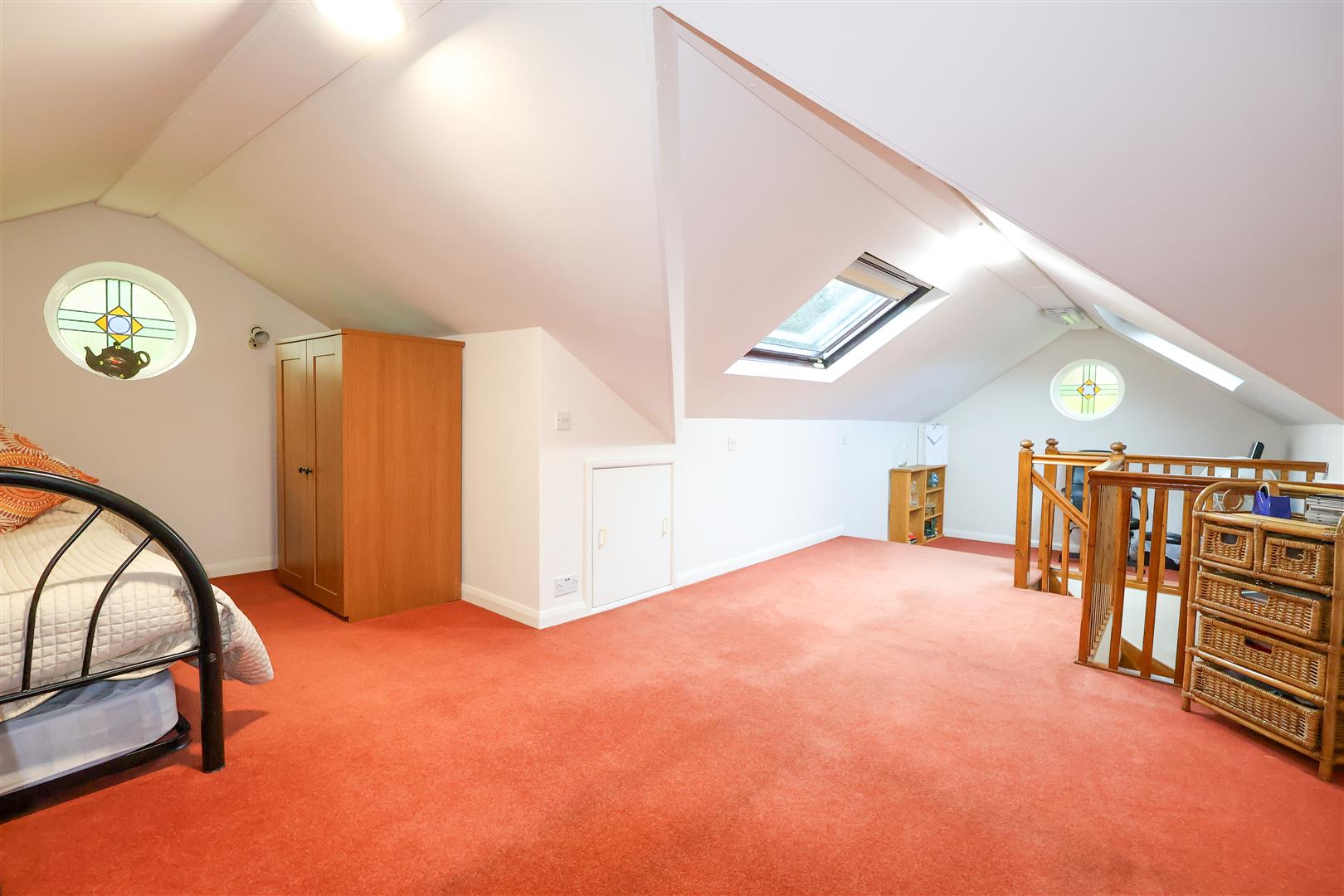 The main entrance door leads to a spacious entrance hall with two handy storage cupboards, whilst a door and steps lead down into the good size living room, flooded with light through two large bay windows and offering a fireplace with gas fire. The space leads open plan into the dining room, with double doors leading to the rear garden and steps up into the breakfast kitchen, which comes fitted with a range of units and also offers space for a table. The utility room houses the gas central heating boiler, whilst offering space and plumbing for a washing machine and dryer, plus a door leading to the rear garden. The main bedroom is a great size, offering a dressing area and modern ensuite shower room. A further bedroom with fitted wardrobes and a bathroom with Jacuzzi bath completes the downstairs layout. To the first floor there is a converted loft space, which has served a number of uses over the years, including as an office space and sleeping area for guests, whilst also offering extensive eaves storage.