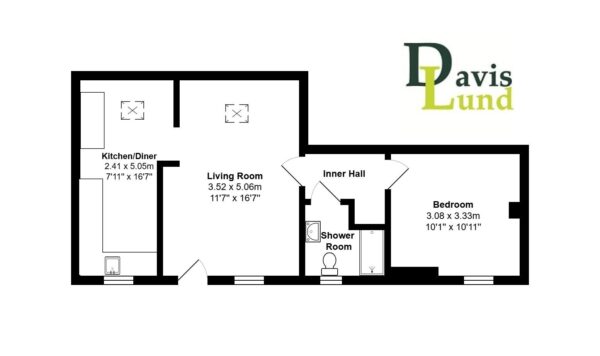 The entrance door leads into the good size living room, a nice light and airy space with windows and a skylight. The kitchen/diner comes fitted with a range of units and offers space for a dining table, whilst again being flooded with light, through a skylight. An inner hallway offers loft access and storage, also leading to the double bedroom and the wet room, part tiled and fitted with a white suite. The property is double glazed and a modern gas central heating system is in place.