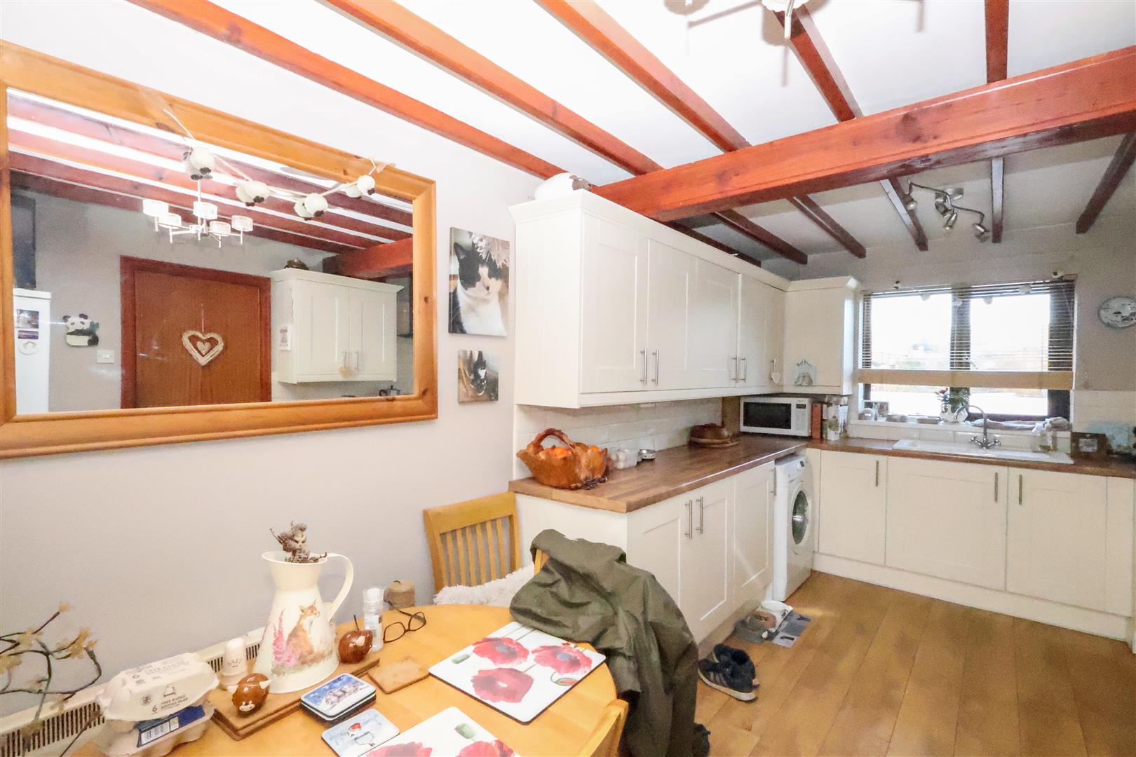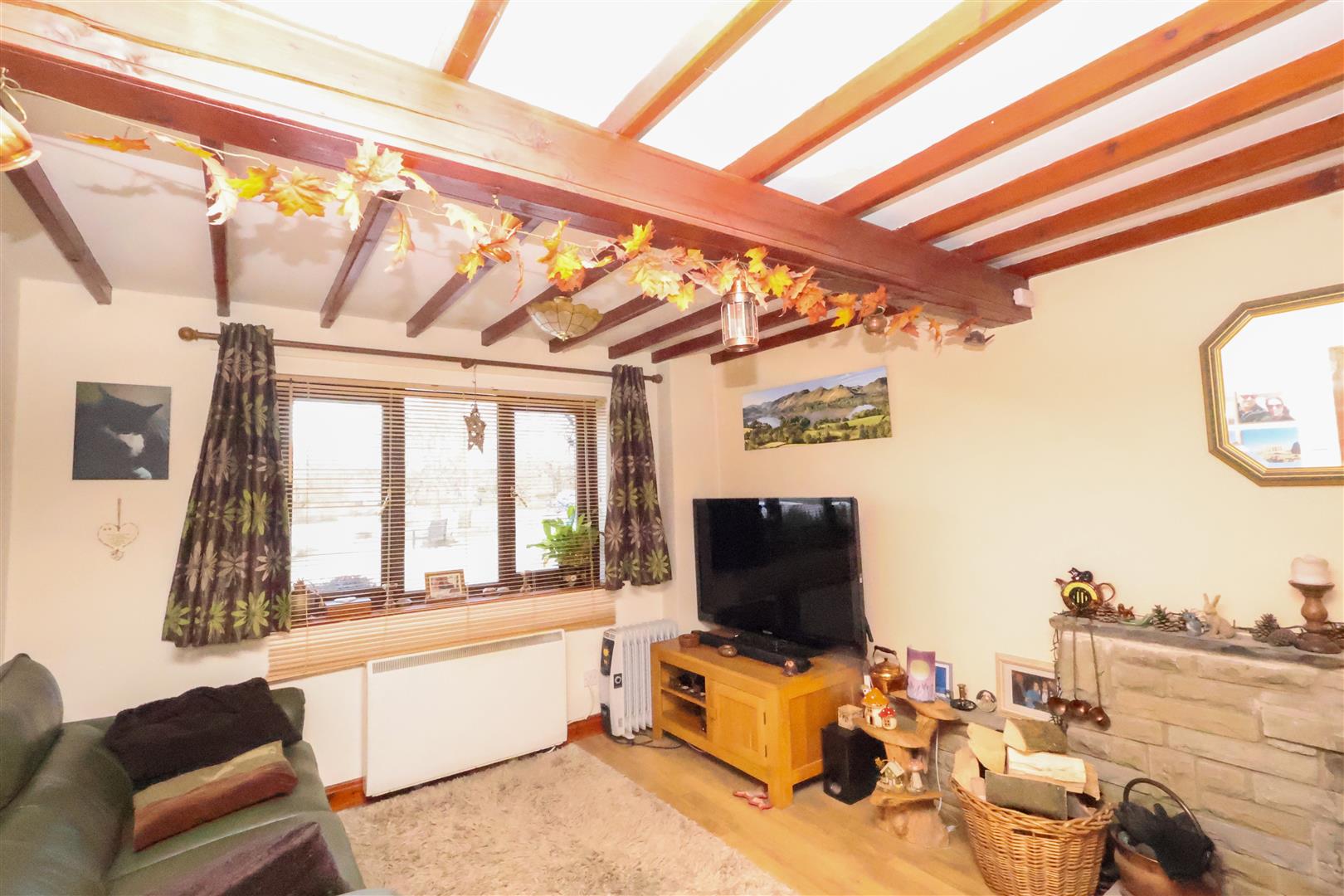 Externally, the property offers a courtyard area to the rear, which is south-east facing, perfect for outdoor seating and entertaining. The courtyard also provides parking for one vehicle. The front of the property benefits from a scenic outlook onto a duck pond and serene countryside views. A shared gravel driveway gives access to the front door, whilst the property also has double glazing throughout and electric storage heating.