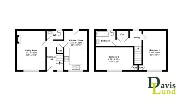 On entering the property, there is a welcoming entrance hall with stairs rising to the first floor and handy under stairs storage. There is a good size living room with large window overlooking the pond and cosy log burner, whilst the kitchen/diner and WC complete the downstairs layout. The kitchen/diner is fitted with a range of modern units, some appliances and a door giving access to the rear courtyard garden. Rising to the first floor, there is a spacious landing with large storage cupboard and loft access. There are two generous double bedrooms with fitted storage and large windows giving an airy feel and the fully tiled bathroom, fitted with a white suite, including bath with shower and glazed screen over.