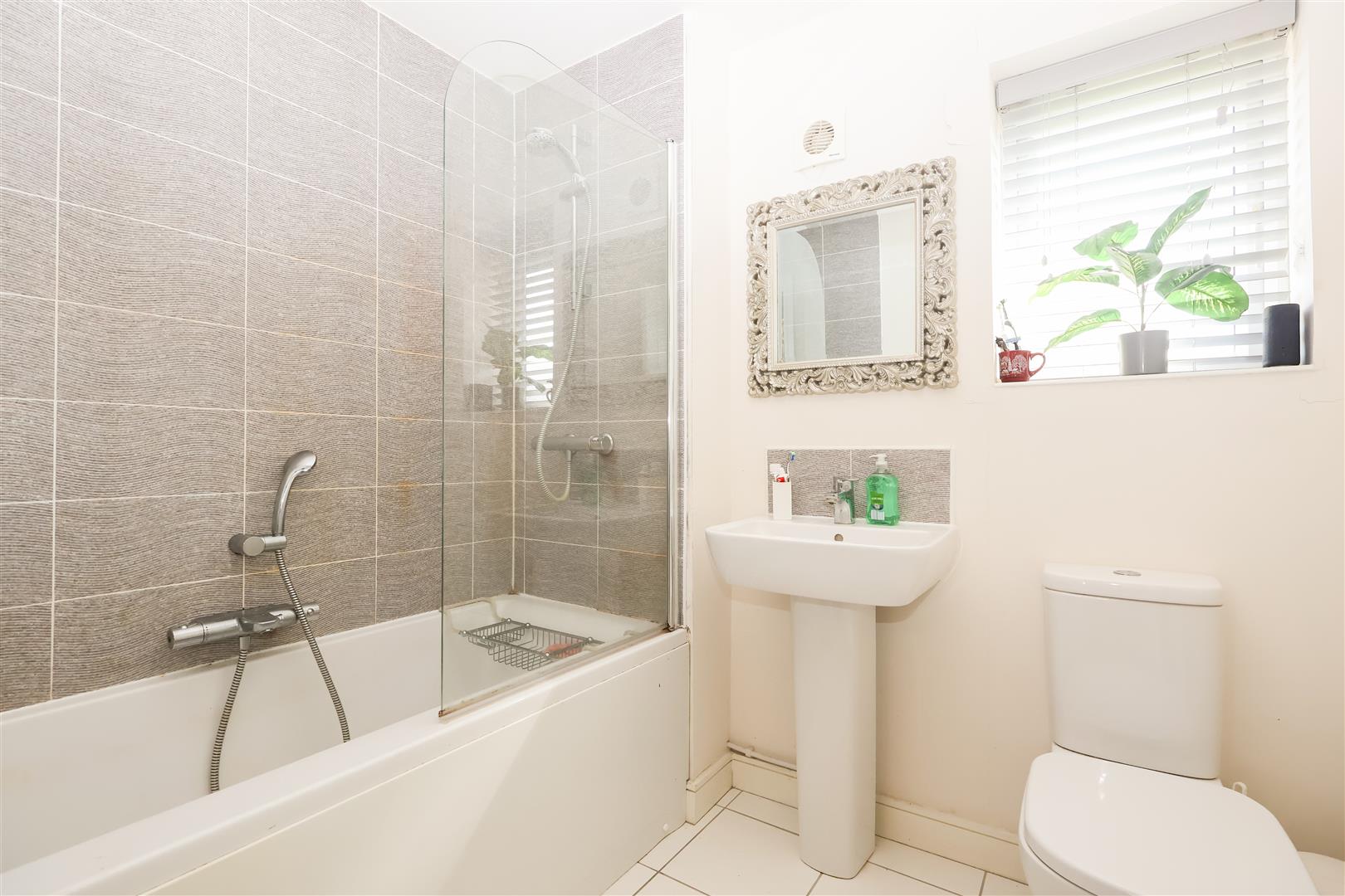 On entering the property, there is a welcoming entrance hall with cloakroom area, WC and stairs rising to the first floor. The double aspect living room is a good size, feeling light and airy with a bay window. The kitchen/diner is a great size, fitted with a range of modern units and integrated appliances, whilst patio doors give access to the rear garden. The tiled floor and double aspect again help to create a light open plan living space. Rising to the first floor, there is a landing with loft access and a cupboard providing handy storage. The main bedroom is a generous size, with space for a super king bed and an ensuite shower-room. There are three further well-proportioned double bedrooms and the house bathroom, which completes the layout. The bathroom is part tiled and fitted with a modern white suite, including a bath with shower and glazed screen over.