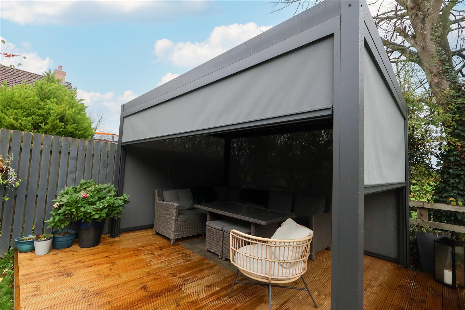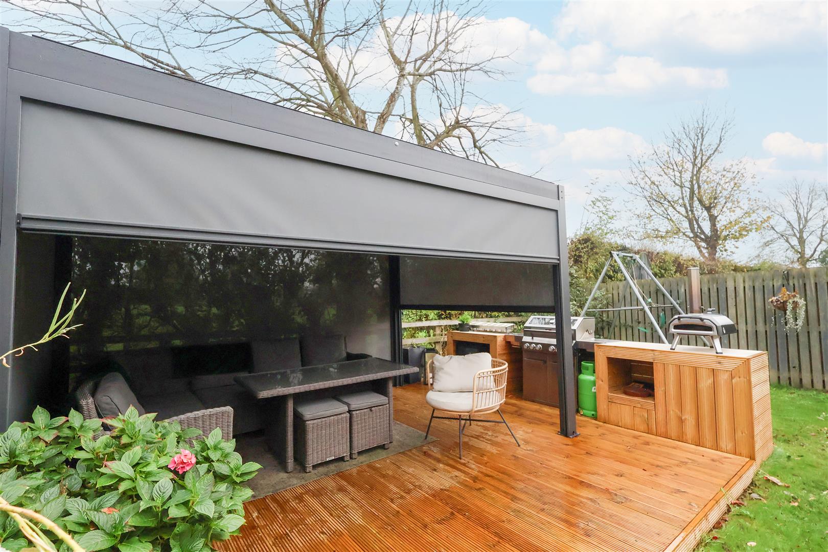 Externally, the front of the property is partly laid to lawn, with a driveway providing parking and access to the garage/store. There is gated access and pathway to the side of the house, leading to the fully enclosed rear garden, which is mostly laid to lawn with a decked entertainment area, complete with covered pergola, perfect for outdoor socialising. To the side of the property, there is space for further outdoor storage. The property also benefits from double-glazing throughout and gas central heating.