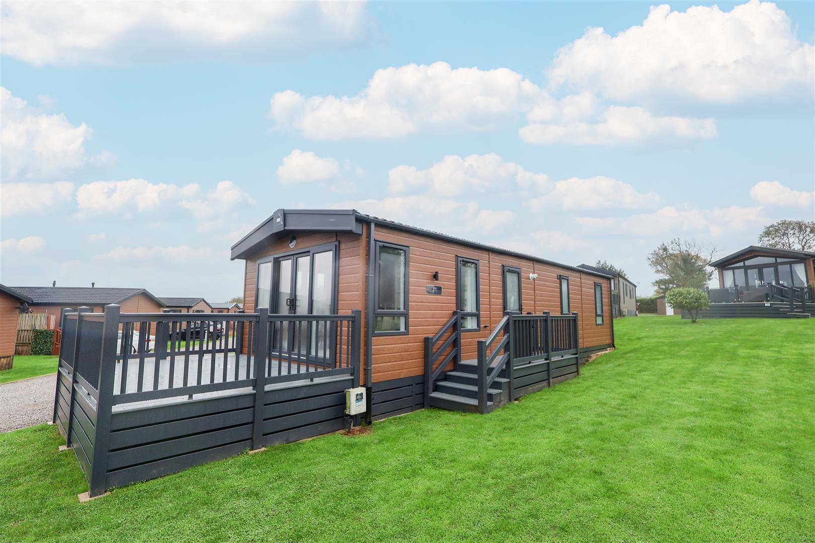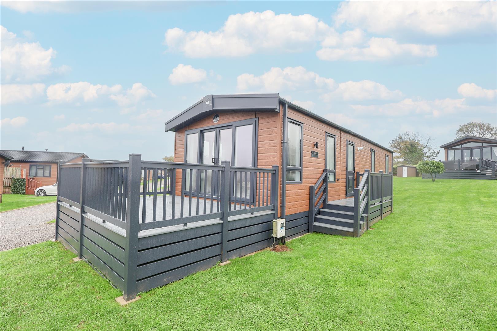 A beautiful two-bedroom lodge, situated in a prime spot on a tranquil lodge park near Thirsk enjoying stunning open views. The newly-constructed lodge sits on this meticulously maintained park, surrounded by well-kept gardens.The lodge reveals a lovely modern and immaculately presented interior. A large, decked balcony to the front of the lodge makes the most of the glorious countryside views towards Sutton Bank, accessed through double doors from the living room and making an ideal entertaining space.