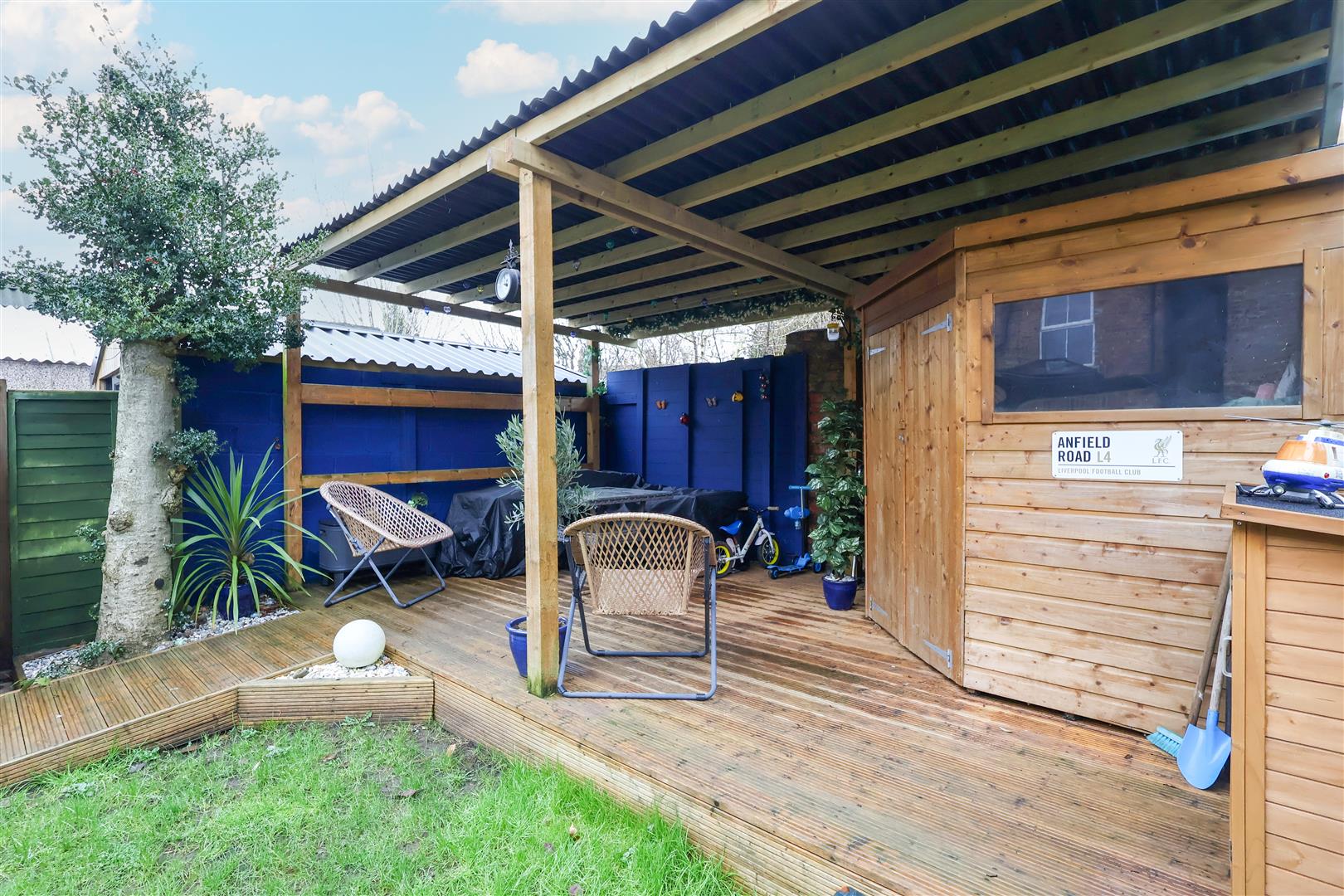 Externally, there is a delightful, fully enclosed rear garden, accessed through a gate to the side of the property. The garden is partially laid to lawn with a paved patio area and fenced boundaries. A pathway leads to a lovely decked seating area, with a covered pergola and storage shed. Street parking is available to the front of the property. The property also benefits from double glazing throughout and gas central heating.
