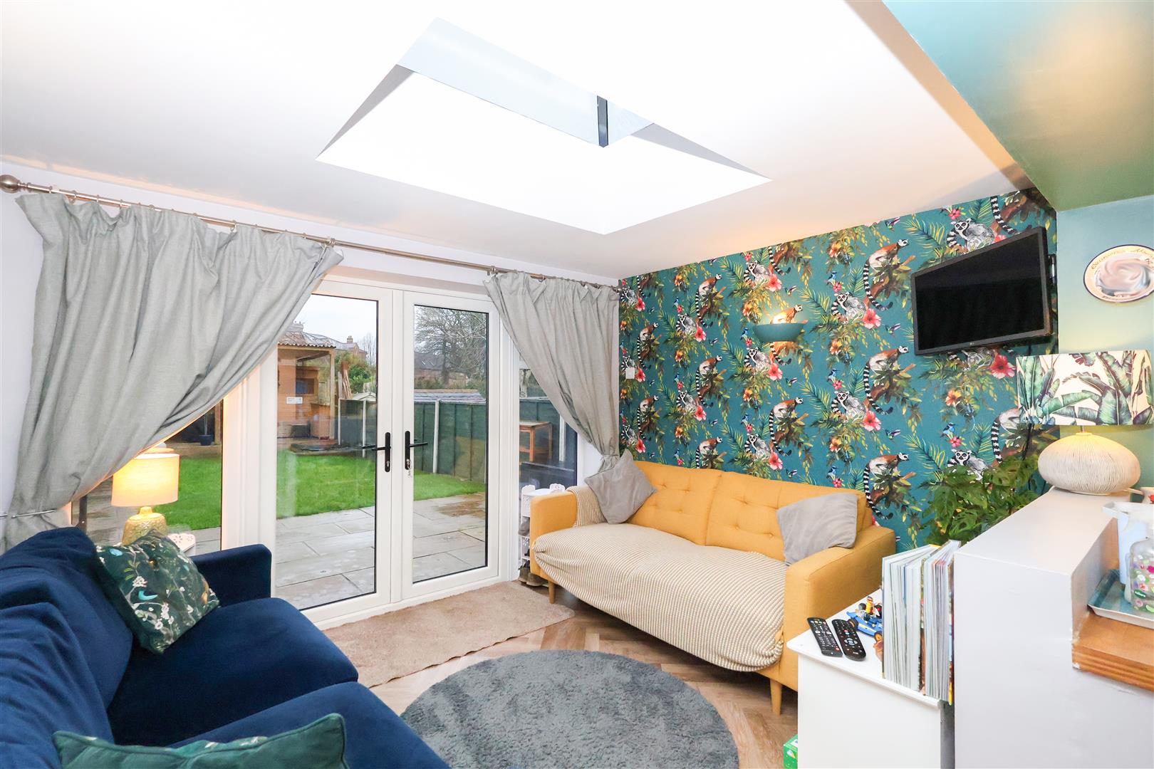 On entering the property, there is a good size multi-functional reception room with cloakroom area and feature fireplace. Through a doorway, there are stairs rising to the second floor and a further living room with multi-fuel burning stove and a lovely outlook onto the rear garden and beyond. Downstairs, there is a generous kitchen/diner/family room, coming fitted with a range of stylish units and appliances. There is a separate utility/boot room and downstairs WC. Extended to the rear, the property now boasts a lovely open plan seating area with double doors allowing access to the rear garden and the room is flooded with light through a large skylight. The first floor boasts two bedrooms and the family shower room. The main bedroom is a good size double with fitted wardrobes, there is a further single bedroom with a large window giving an airy feel. Partially tiled, the shower room is fitted with a white suite including large shower cubicle and vanity basin unit. The top floor offers a further attic bedroom, with skylights and handy eaves storage.